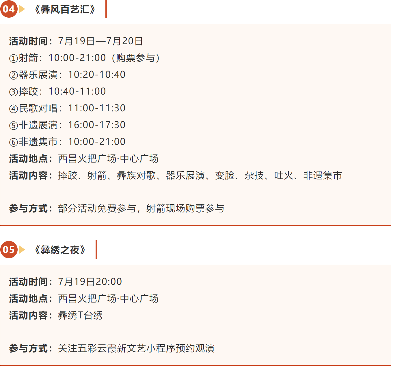 “彝家风情盛宴”“天天火把节”系列主题活动