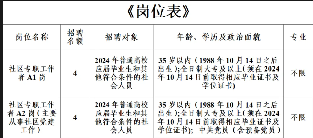关于面向2024年普通高校应届毕业生和其他符合条件的社会人员公开招聘社区专职工作者的招考简章